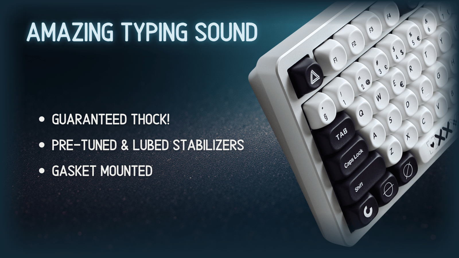 Gasket-mounted design with five layers of foams (Poron, IXPE) reduces unwanted sound and vibration — giving you a really thocky sound profile.